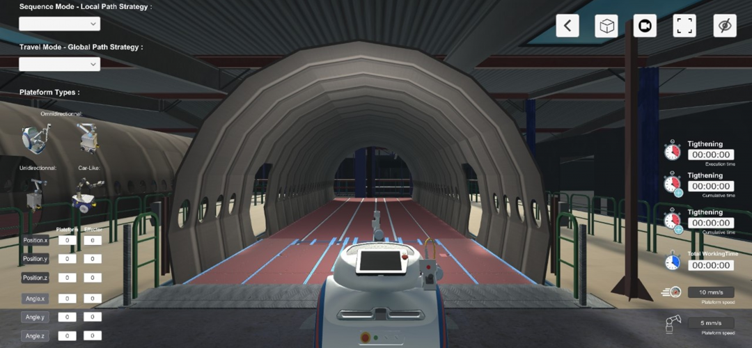 The research project proposed here is the CIAO project, an R&T project developed in-house at Airbus Opération SAS. The aim is to set up a collaborative platform for autonomous movement using two laser scanners (radar sick) to locate and avoid positive or negative obstacles. The platform is equipped with a UR10 arm on which a pneumo-electric screwdriving head and a camera-based vision system are implemented, capable of detecting and repositioning the arm to ensure that the screw tightening operation is carried out correctly.